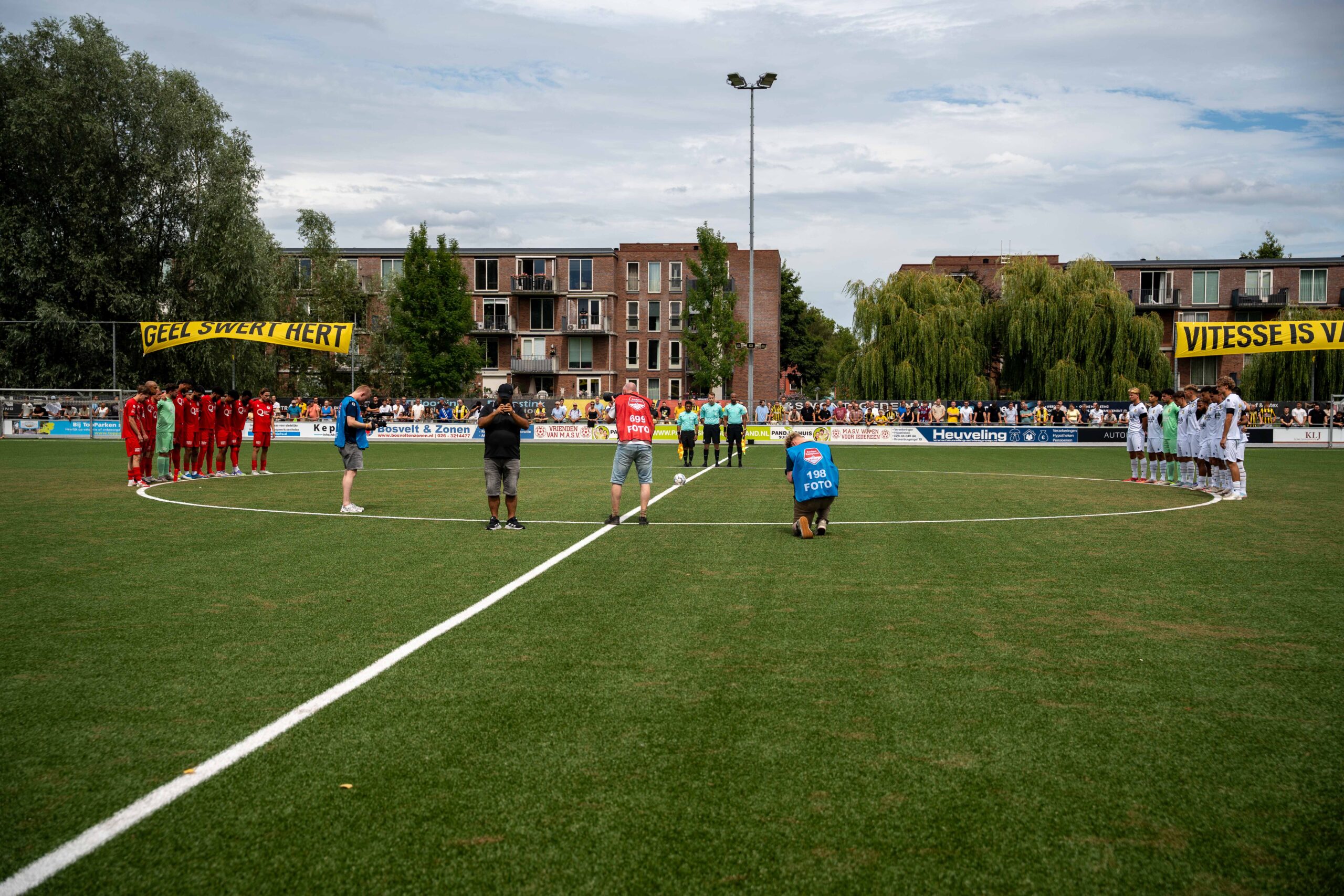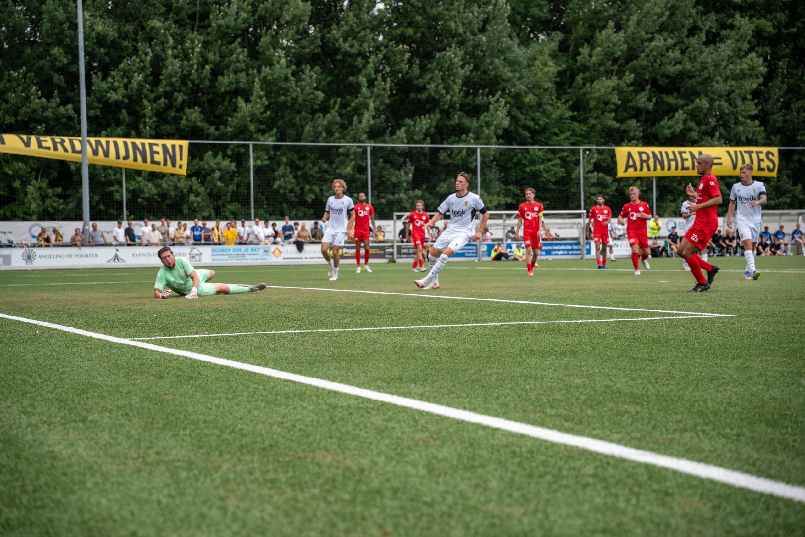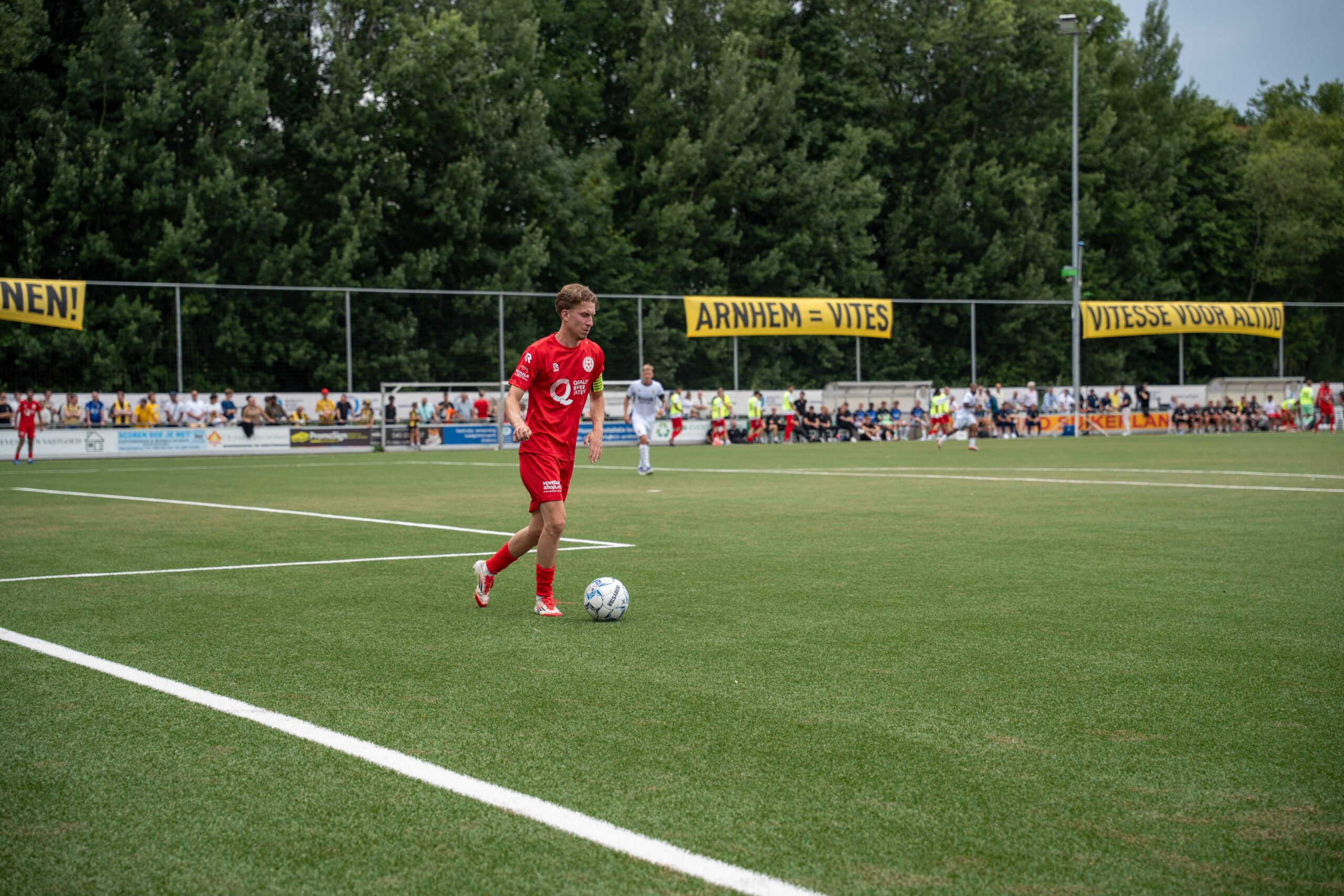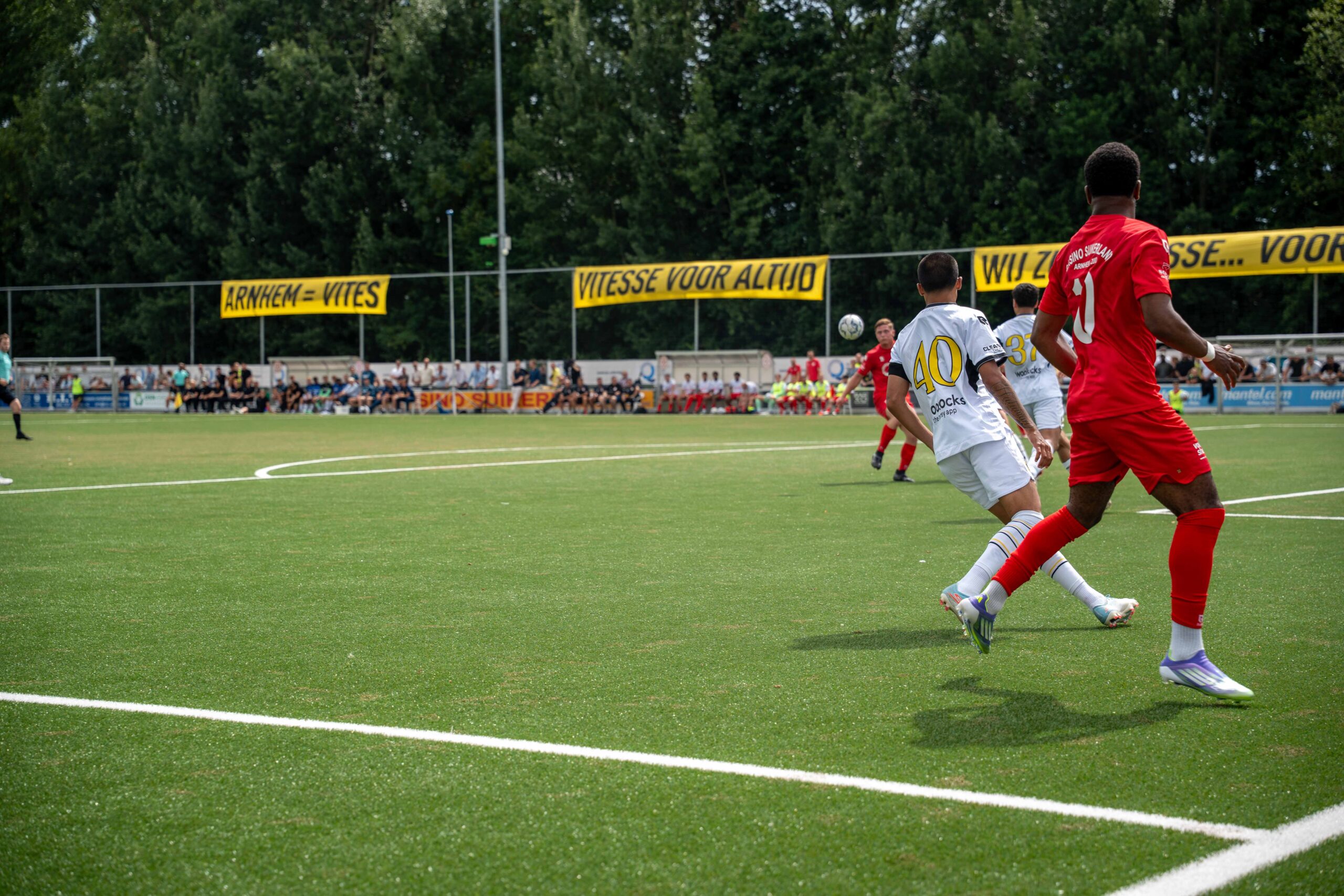 Het oefenduel tussen MASV en Vitesse stond zondagmiddag op Sportpark Malburgen-West volledig in het teken van de supportersactie om Vitesse te behouden voor het betaalde voetbal. Voor een uitverkochte accommodatie met 1500 toeschouwers speelde de profclub een serieuze wedstrijd tegen de Arnhemse amateurs, die het eerste half uur goed weerstand boden.