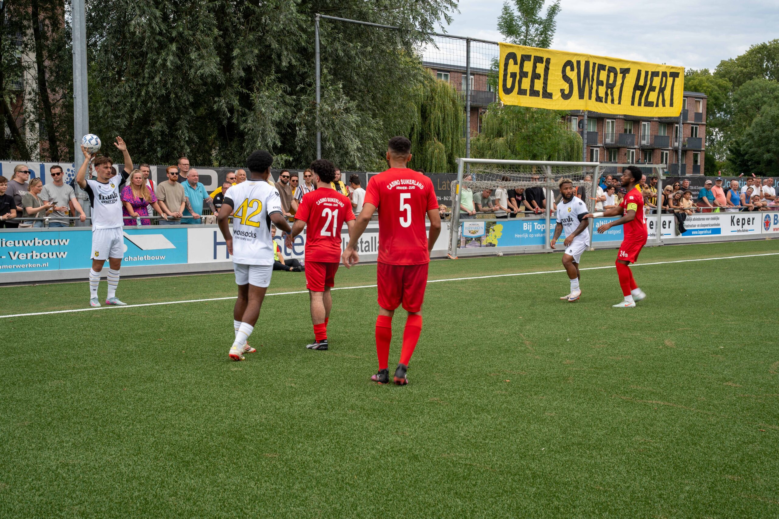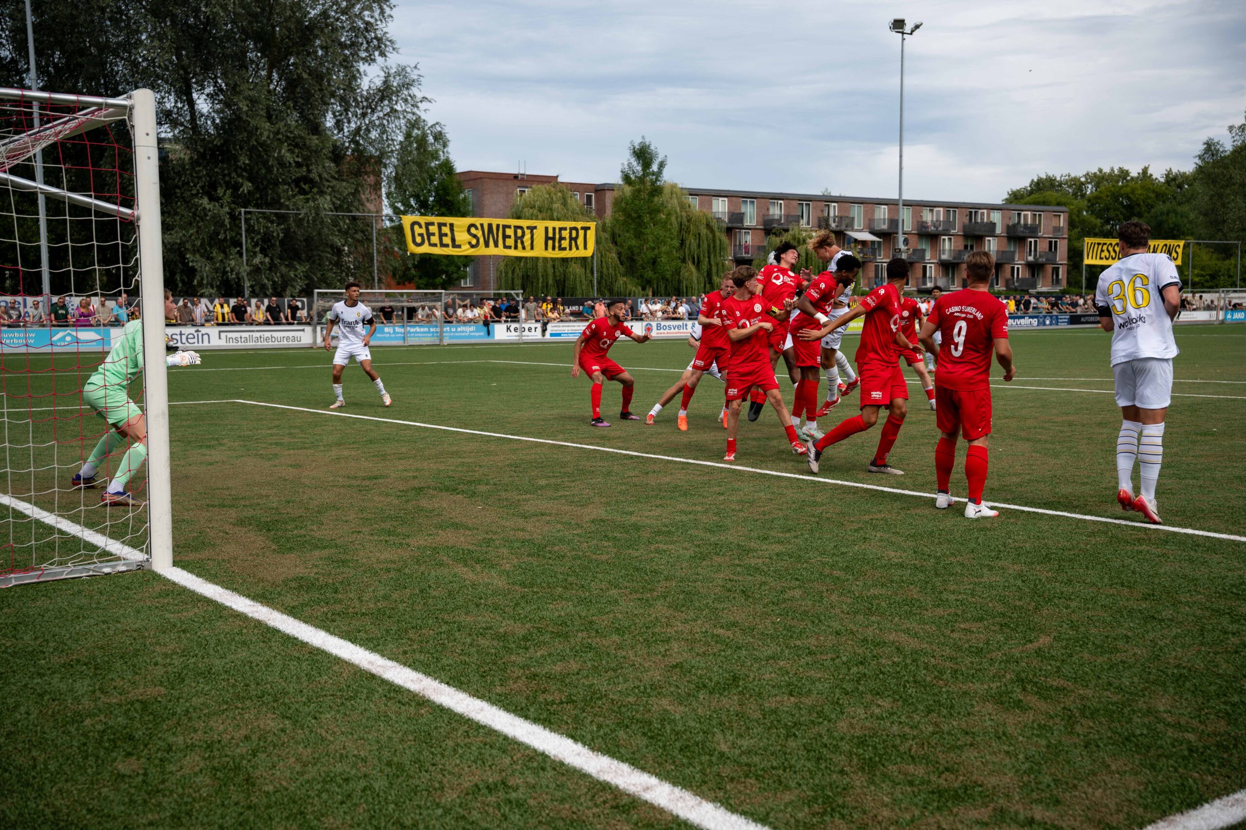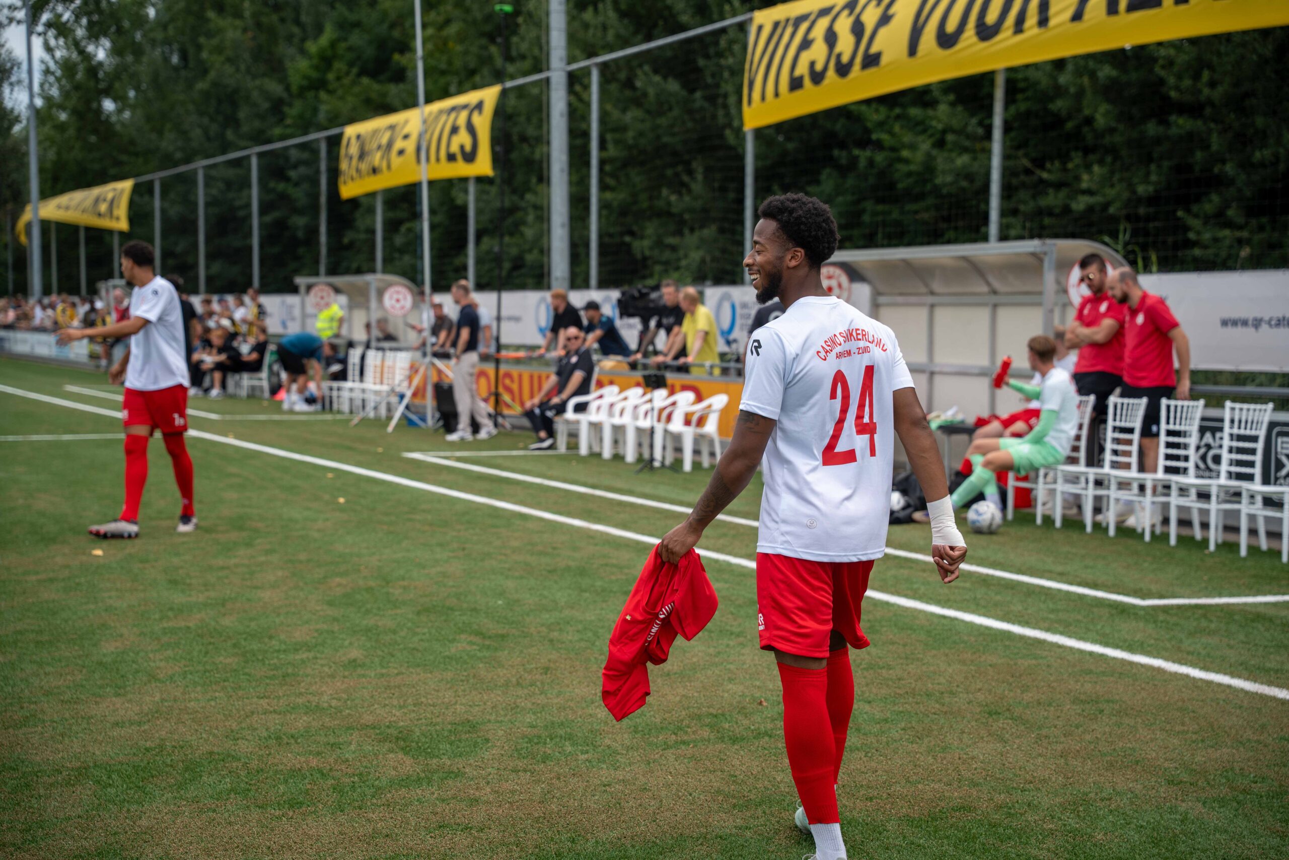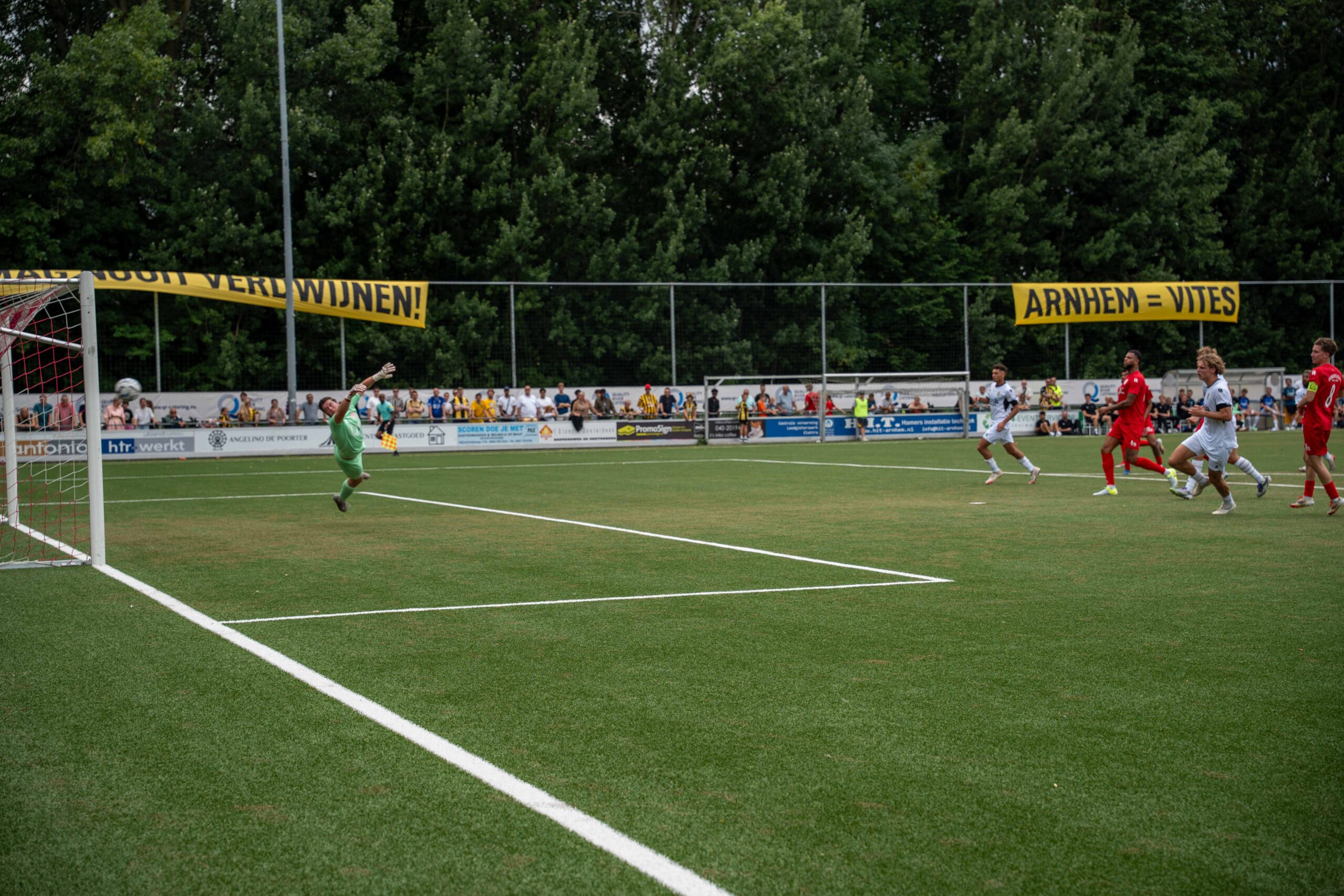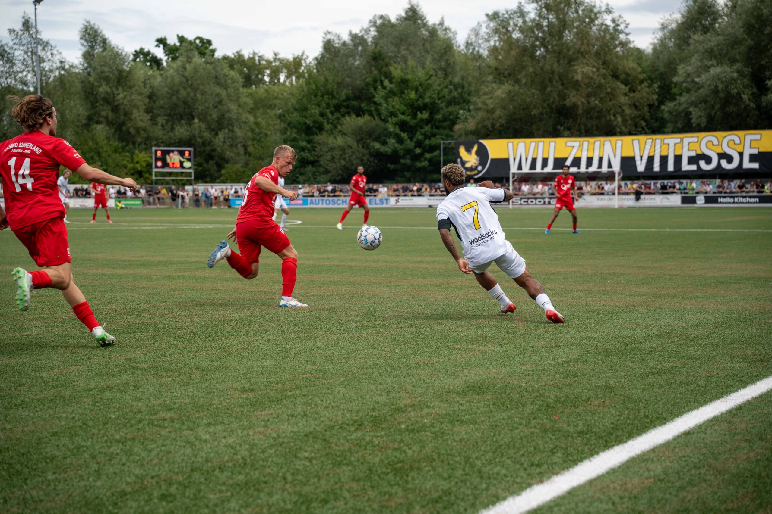 Het oefenduel tussen MASV en Vitesse stond zondagmiddag op Sportpark Malburgen-West volledig in het teken van de supportersactie om Vitesse te behouden voor het betaalde voetbal. Voor een uitverkochte accommodatie met 1500 toeschouwers speelde de profclub een serieuze wedstrijd tegen de Arnhemse amateurs, die het eerste half uur goed weerstand boden.